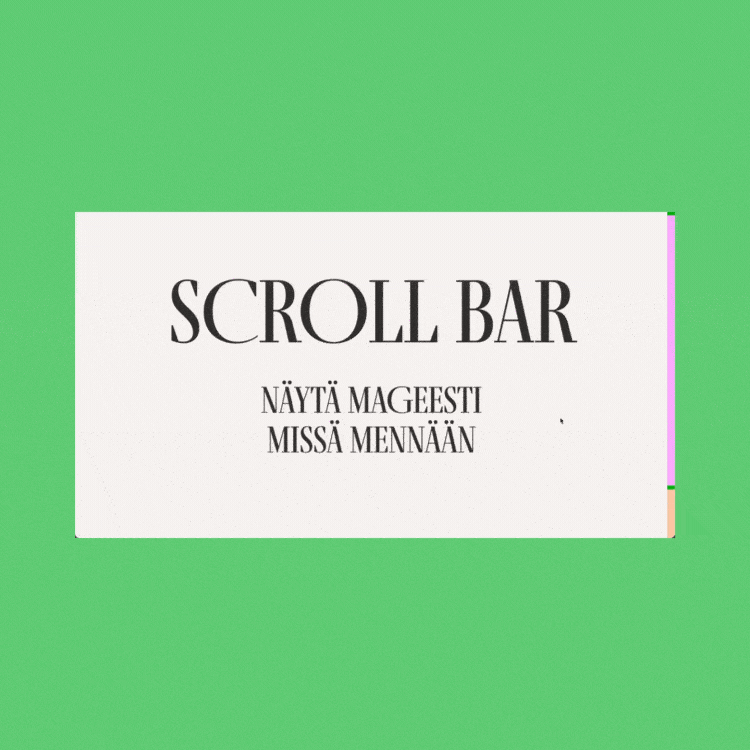 Luokat: All Koodipala Squarespace ohjeet Squarespace suunnittelijoille All / Koodipala Scroll Bar – CSS-koodipala Squarespaceen 12,00 €