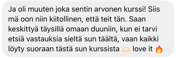 Ja hei tiesitkö, että tämä kurssi on ainoa laatuaan Suomessa?